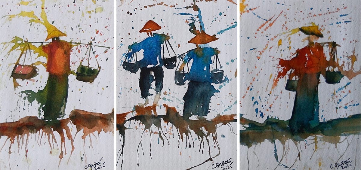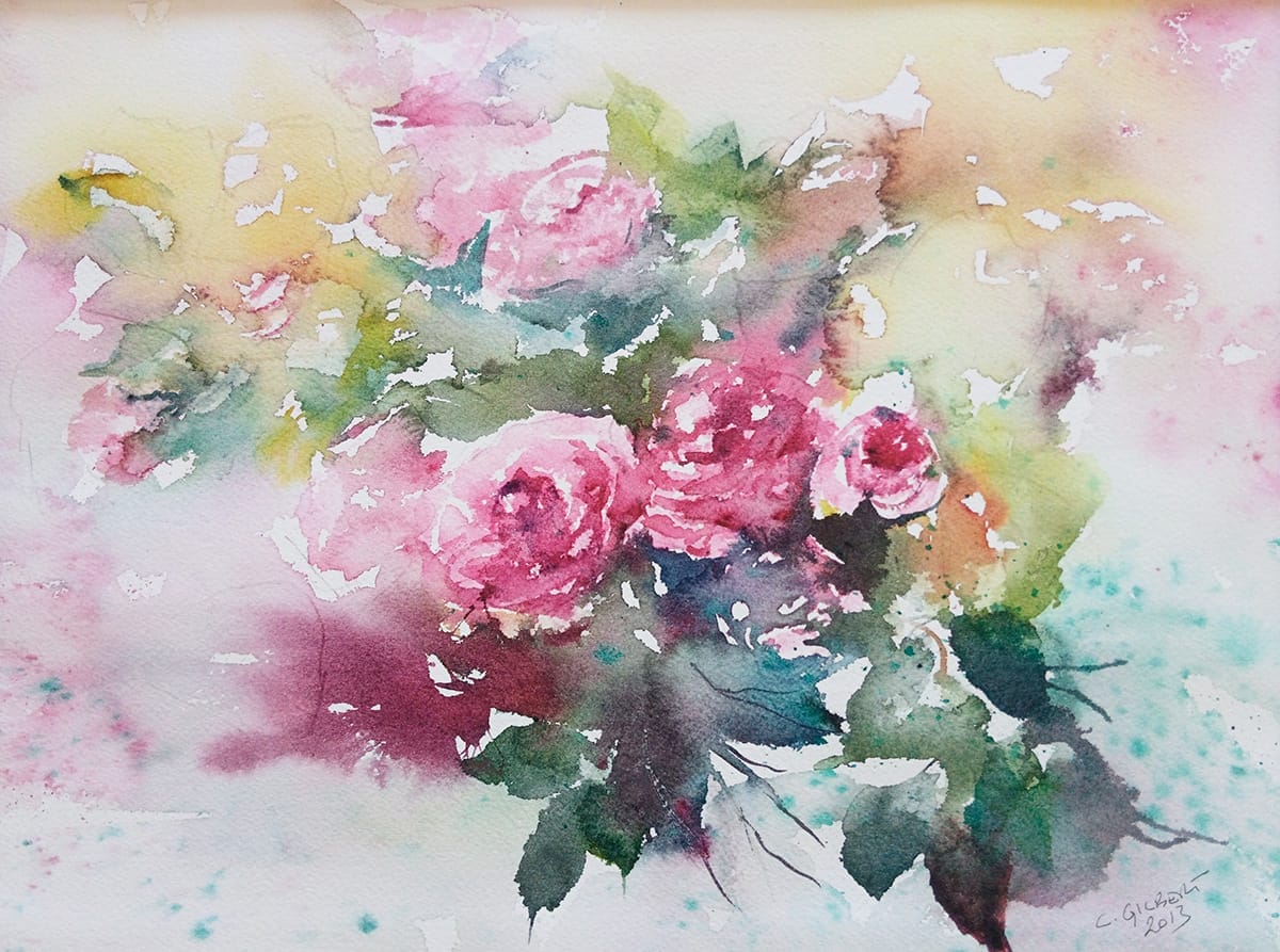 Autodidacte, Christiane a su trouver dans la technique de l’aquarelle son chemin bordé de talent et définie de magique le jeu des mélanges des couleurs, la transparence et l’apaisement que peut apporter la pratique de l’aquarelle.