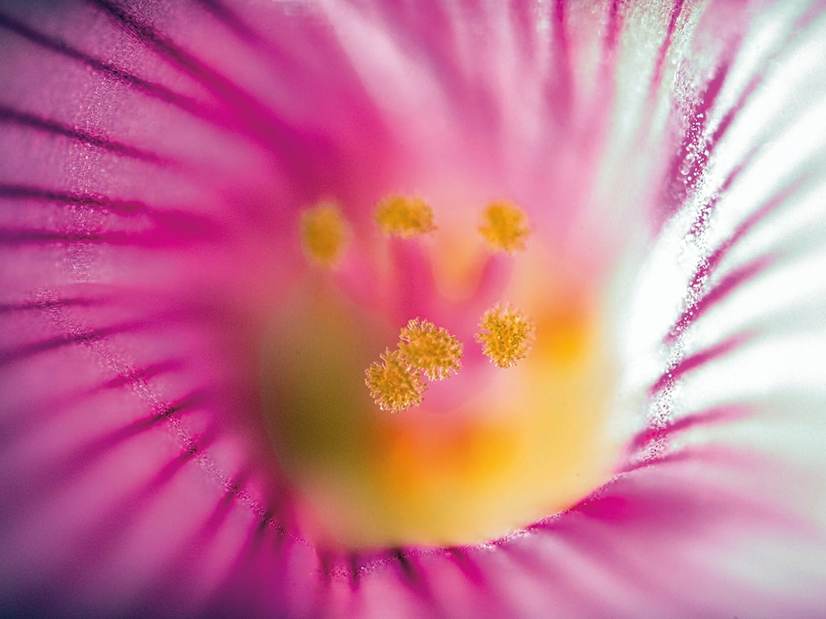 Son projet photographique est une réflexion sur l’harmonie de la nature dans son infiniment petit, en visualisant le cœur des fleurs ou des plantes, là où l’œil n’arrive plus à en distinguer les détails.
