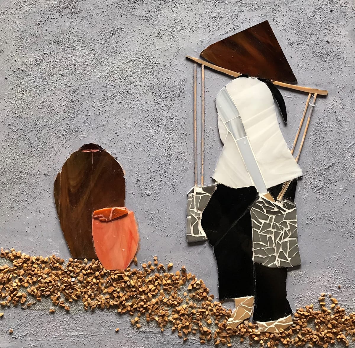 Fascinée par cet art, VICA décide de se former auprès de professionnels aux différentes méthodes et de les faire évoluer en utilisant divers matériaux (verre, grés, marbre, ardoise, briare, bois … (récupération et recyclage de différents matériaux qu’elle intègre). En combinant ces différents médiums et matériaux, l’artiste à la possibilité d’explorer différents horizons.