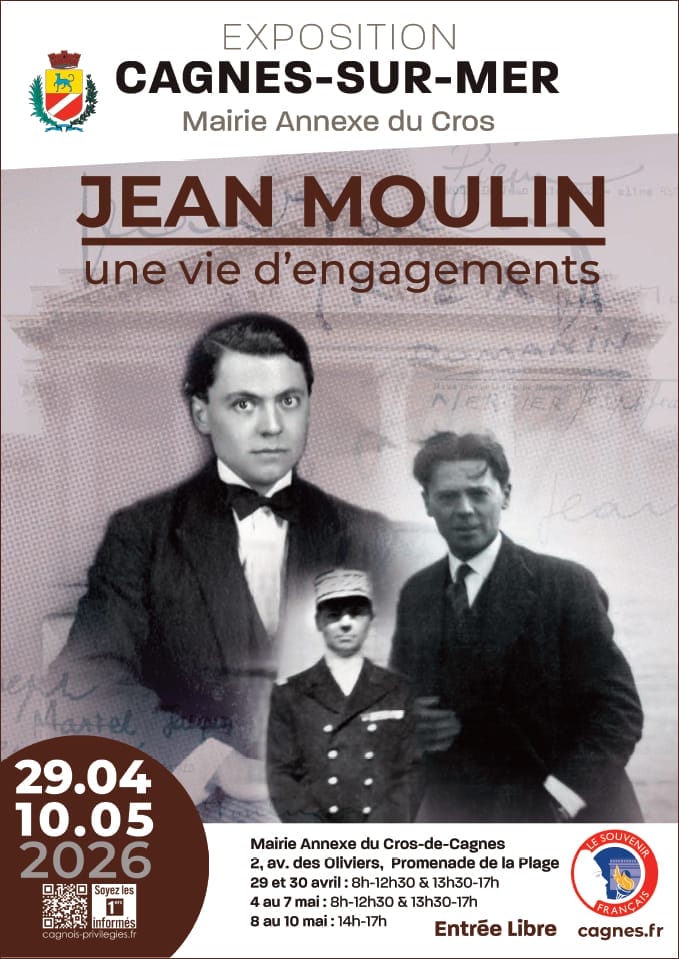 La mairie annexe du Cros-de-Cagnes accueille l’exposition JEAN MOULIN – une vie d’engagements du 29 avril au 10 mai 2026.