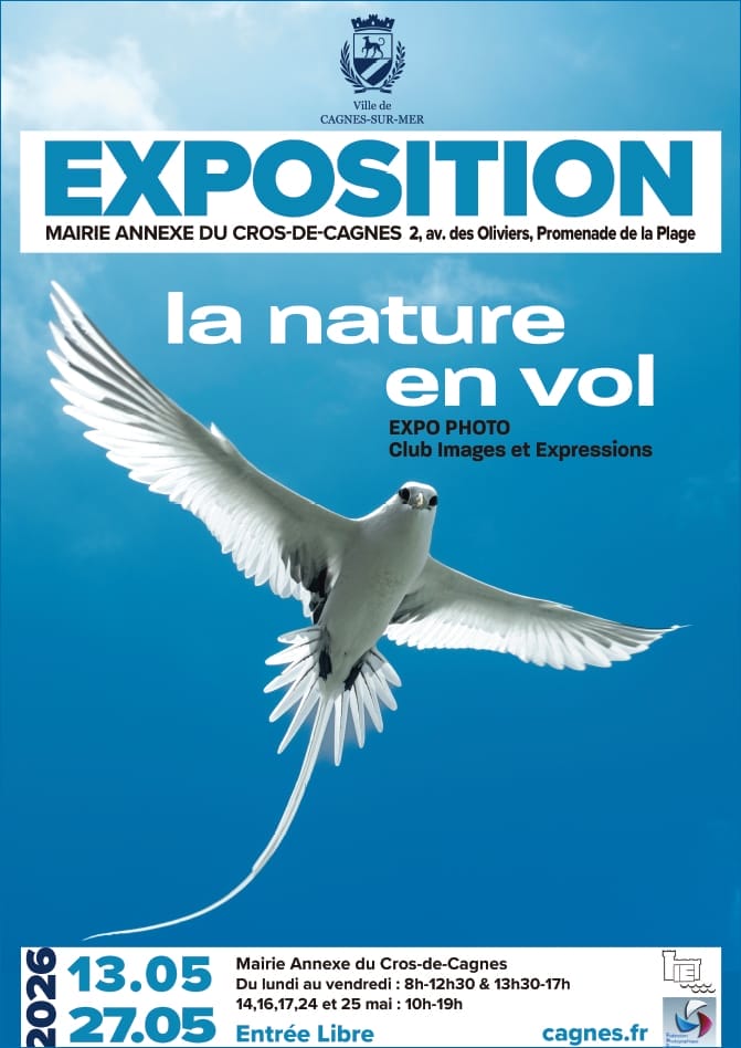 La mairie annexe du Cros-de-Cagnes poursuit ses expositions en accueillant le club photo IMAGES ET EXPRESSIONS, pour l’exposition temporaire « la nature en vol » – du 13 au 27 mai 2026.