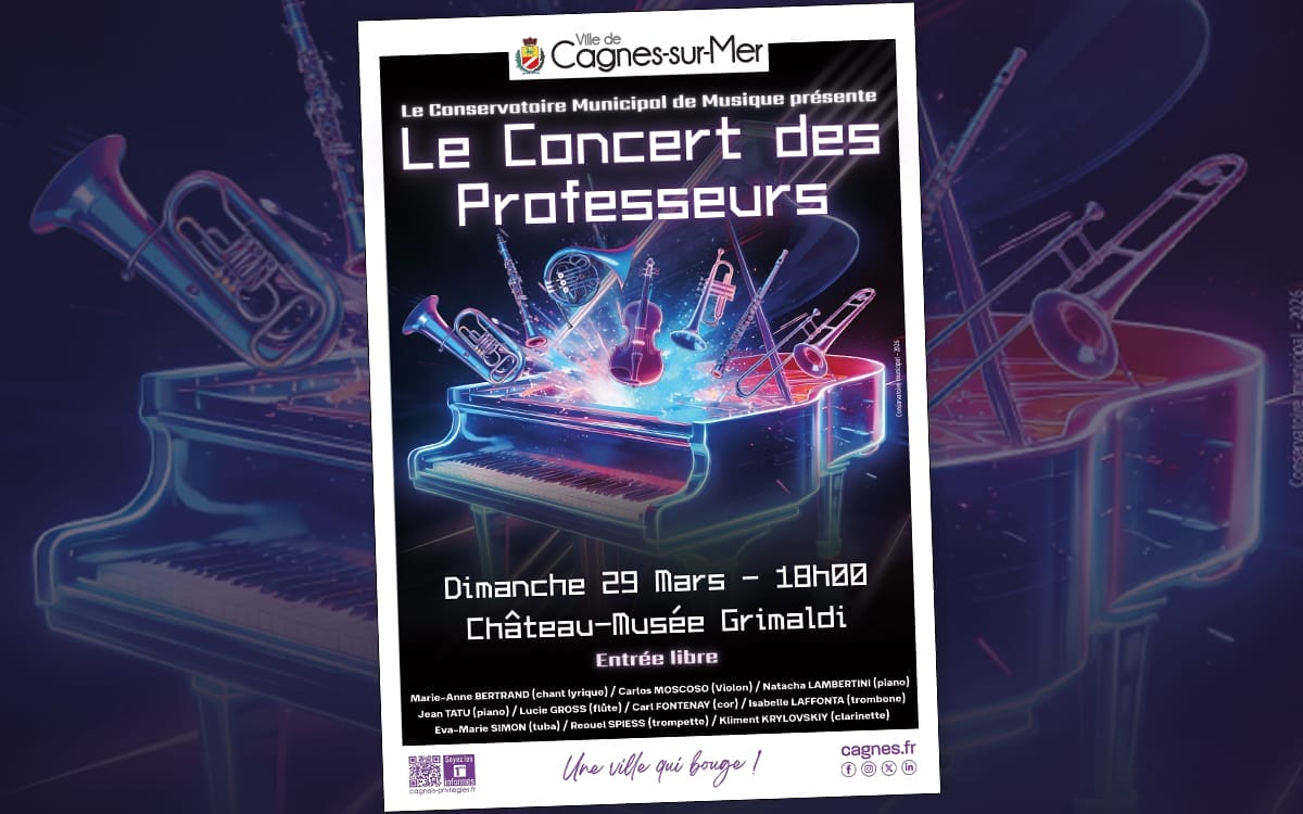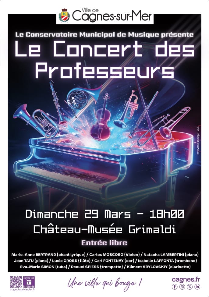 Dimanche 29 mars, rendez-vous au Château-Musée Grimaldi pour le Concert des Professeurs du Conservatoire de Cagnes-sur-Mer.