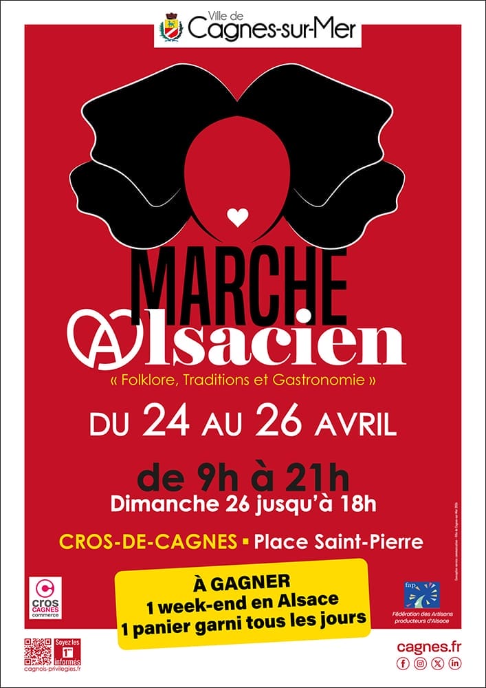 Pour la 7e année consécutive, la ville de Cagnes-sur-Mer en partenariat avec l’association Cros-de-Cagnes Commerce et la Fédération des Artisans et Producteurs d’Alsace vous donnent rendez-vous le week-end du 24 au 26 avril 2026 sur la place Saint-Pierre au Cros-de-Cagnes, pour une nouvelle édition de leur grand marché alsacien dans un espace convivial alliant découvertes, dégustations et convivialité !