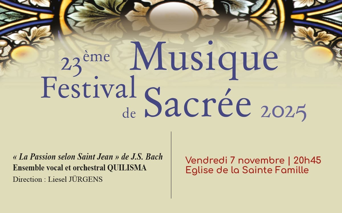 Eglise de la Sainte-Famille Vendredi 7 novembre à 20h45 Ensemble vocal et orchestral QUILISMA – Direction : Liesel JURGENS Festival INVendredi 7 novembre à 20h45 – Eglise de la Sainte-Famille Infos pratiques Festival IN : Tarif plein 15 € / réduit : 12€. Gratuit – de 18 ansBilletterie en ligne ou sur place le soir du […]