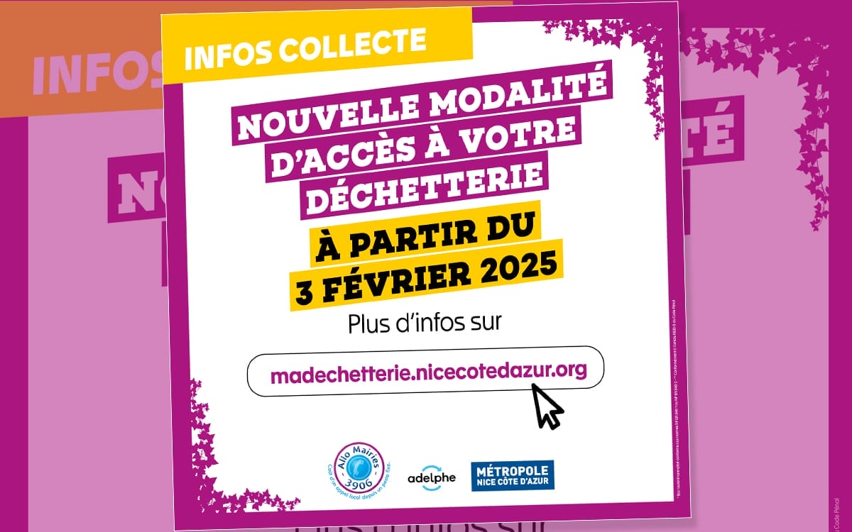 à partir du 3 février La Métropole Nice Côte d’Azur met en place de nouvelles modalités pour les accès en déchetterie. A partir du 3 février 2025, un compte devra être créer sur madechetterie.nicecotedazur.org Pour les nouveaux utilisateurs : création d’un espace personnel pour faire sa demande de nouveau badge Pour les détenteurs d’une carte […]