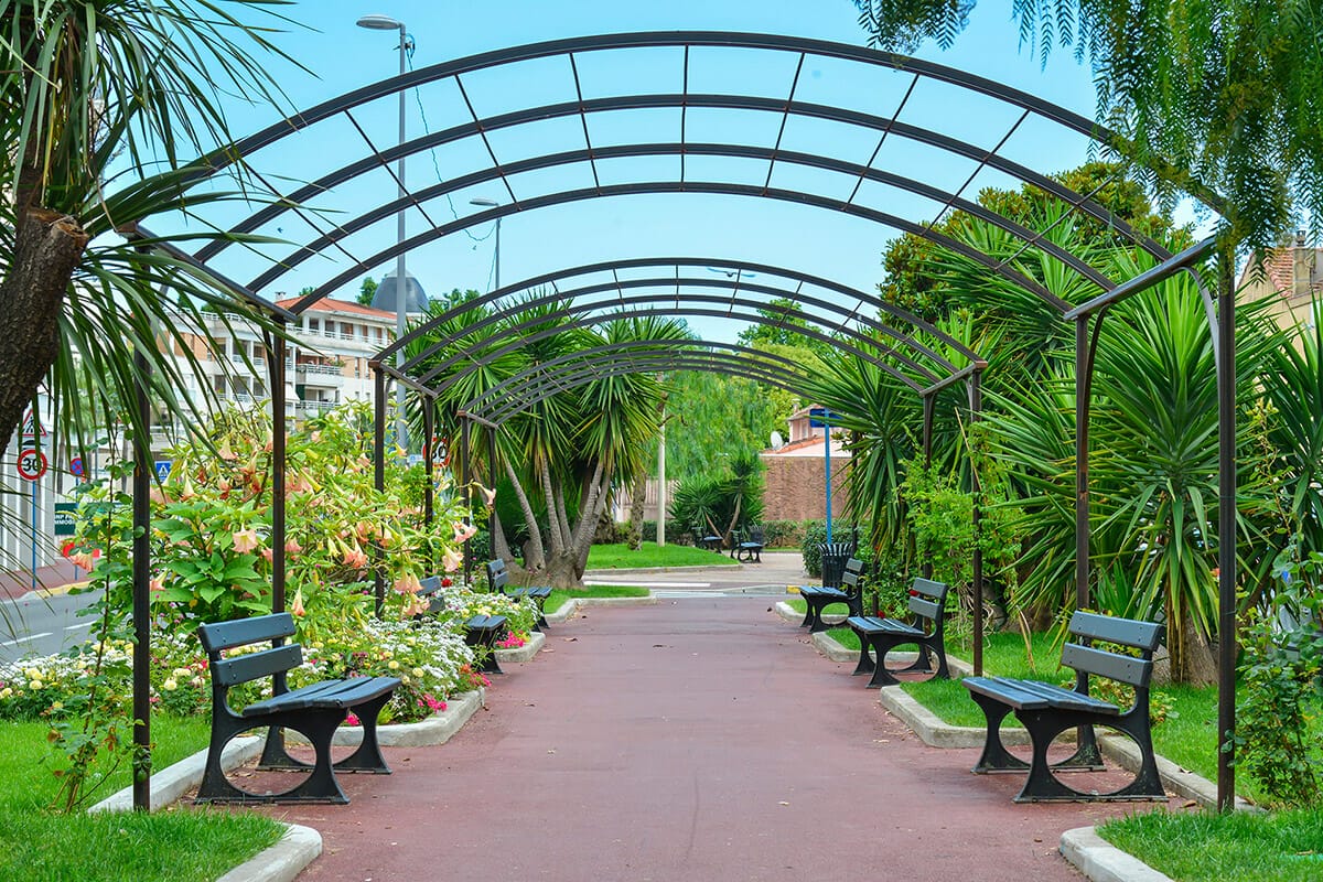 Du Square du 8 Mai, au parc des Canebiers, sans oublier la place de Gaulle au centre-ville ; du parc des sports à la Promenade des Berges de la Cagne, en passant par la place Saint-Pierre, rendez-vous incontournable des boulistes, sans compter les nombreux petits parcs et espaces de repos et bien entendu la « Promenade de la Plage » et la « Promenade de l’Hippodrome ».