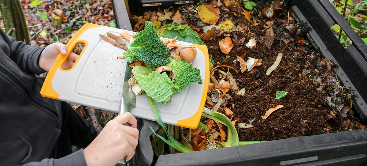 Les déchets de cuisine – coquilles d’œufs, épluchures de fruits et légumes, etc. – peuvent être déposés au compost, tout comme les fleurs fanées, les feuilles mortes, etc. de jardin de petite taille. En revanche, les agrumes, laitages et matières grasses ne sont pas concernés.
