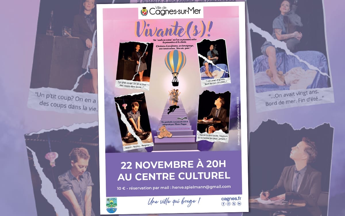 Centre Culturel Samedi 22 novembre à 20h Dans le cadre de la journée internationale pour l’élimination de la violence à l’égard des femmes, le Lions Club « Cagnes, les Vallées » vous propose la pièce de théâtre « Vivante(s) », samedi 22 novembre à 20h au Centre Culturel. Les fonds collectés par le Lions Club seront reversés à des […]