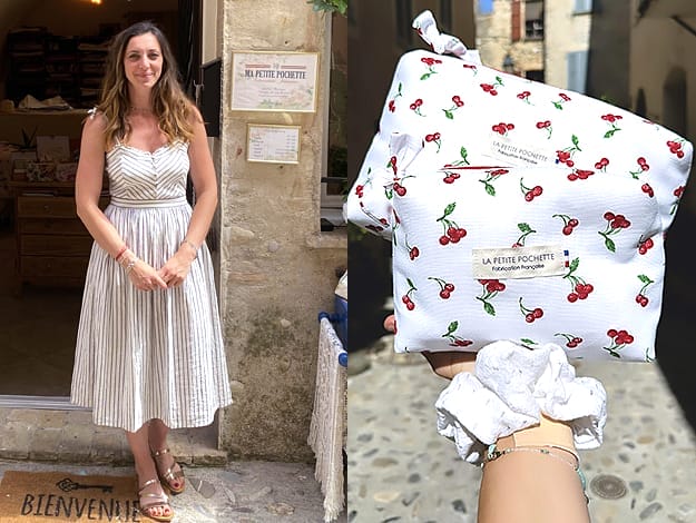 Mélanie a grandi entourée de couturières qui lui ont transmis leur passion. Grâce à ces femmes d’exception, elle a développé très tôt sa créativité. C’est en septembre 2020 qu’elle fonde sa propre marque « La Petite Pochette », et ouvre son atelier/boutique dans le Haut-de-Cagnes. Elle y fabrique des produits artisanaux – pochettes, sacs, cabas de plage en série limitée avec amour et passion