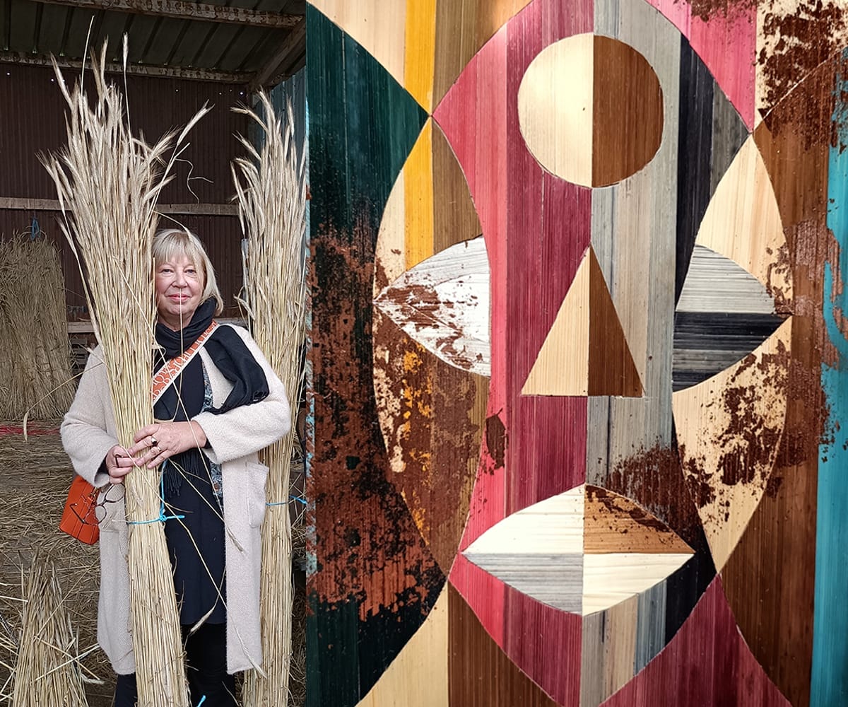 Formée par l’école Boulle, Muriel MESTRE a exercé son métier de tapissier décorateur pendant plus de 30 ans. Lorsqu’elle découvre la marqueterie de paille, il y a quelques années, ce fût un véritable coup de foudre ! Elle transforme ce matériau simple et naturel en éléments décoratifs et raffinés. La paille, une fois appliquée, joue avec la lumière pour lui donner des reflets doux et sensuels qui appellent le toucher. Chaque pièce est unique.